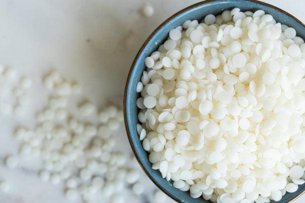 Soy wax is a vegetable wax made from the oil of soybeans. After harvesting, the beans are cleaned, cracked, de-hulled, and rolled into flakes. The oil is then extracted from the flakes and hydrogenated.