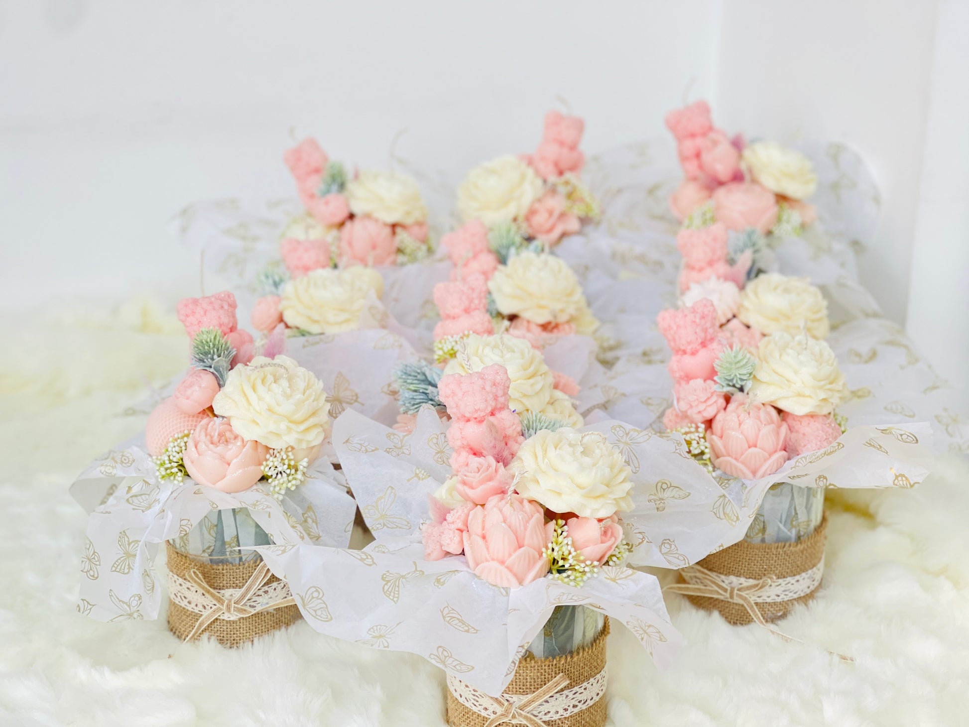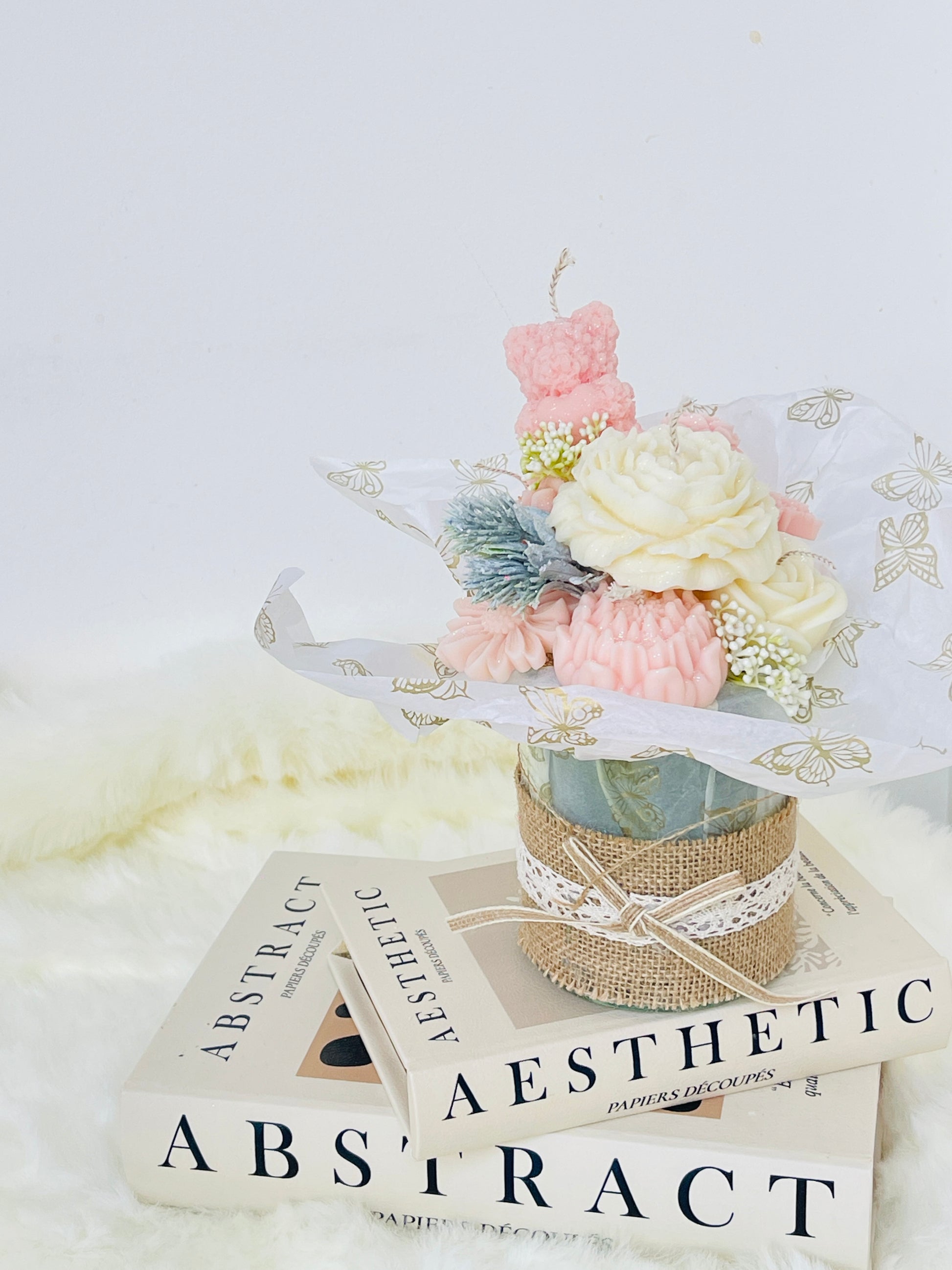Handmade Soy Wax Pink Flower Candle Bouquet with Dried Flowers - Perfect Gift Idea