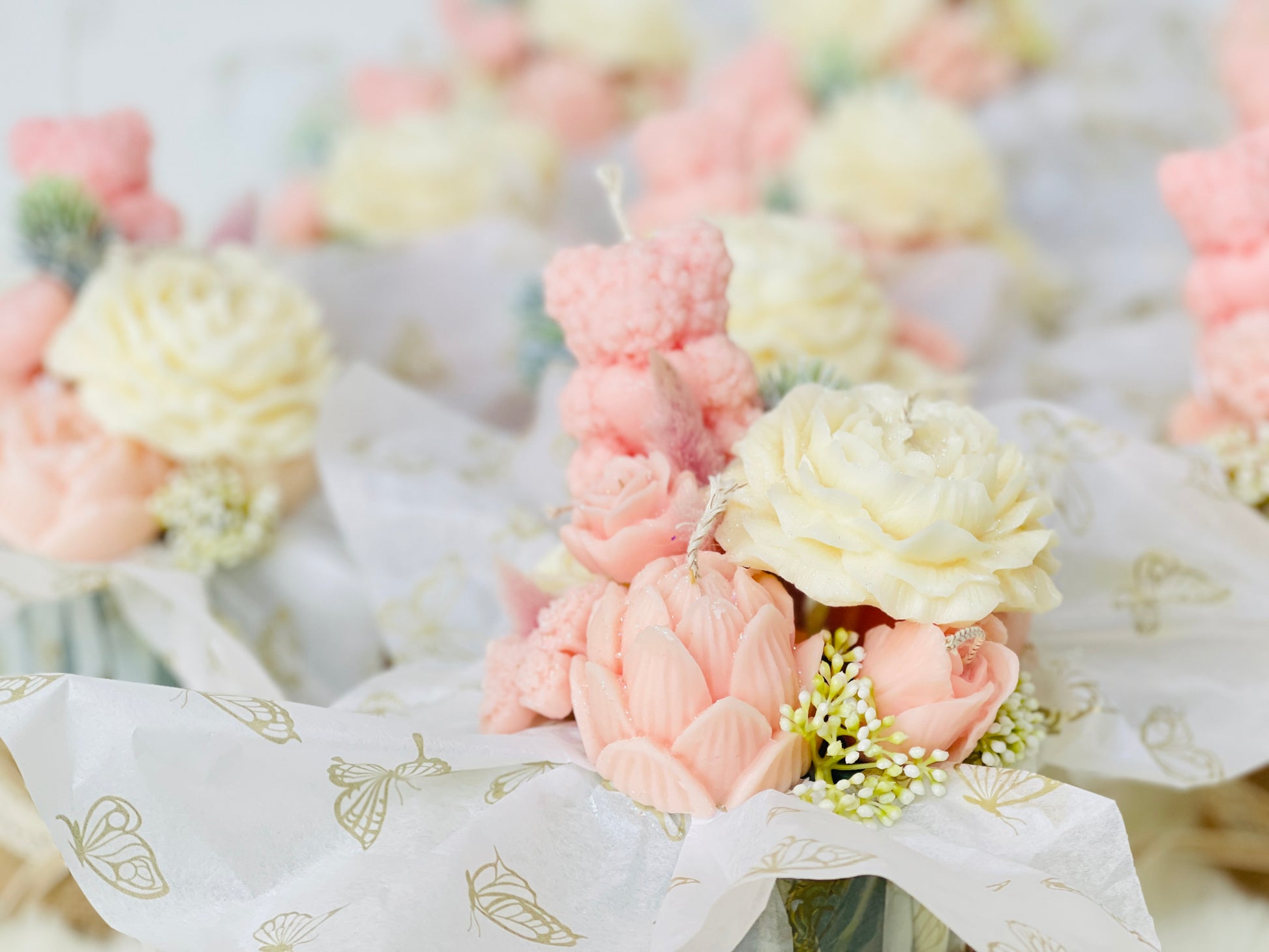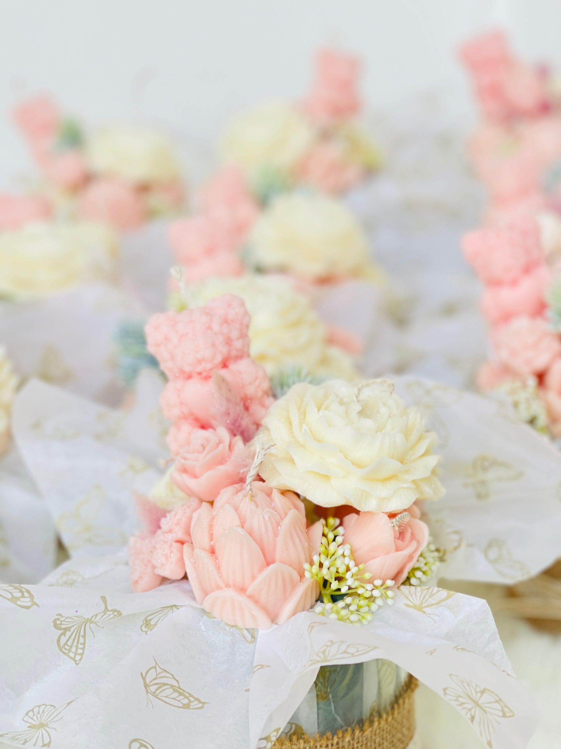 Handmade, bouquet of scented soy wax flower candles. Perfect as a gift idea or home decoration.