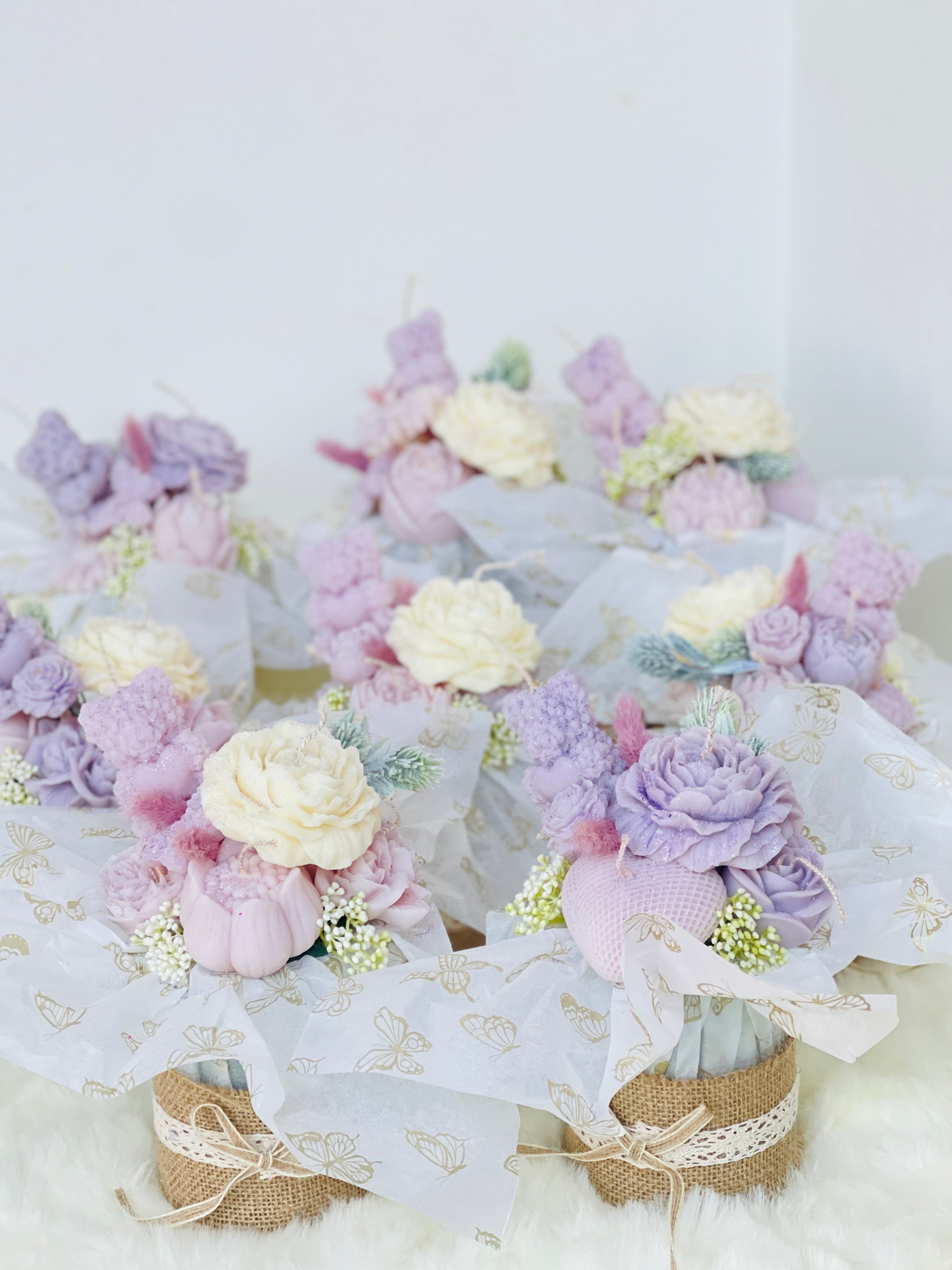 Handmade, bouquet of scented soy wax flower candles. Perfect as a gift idea or home decoration.