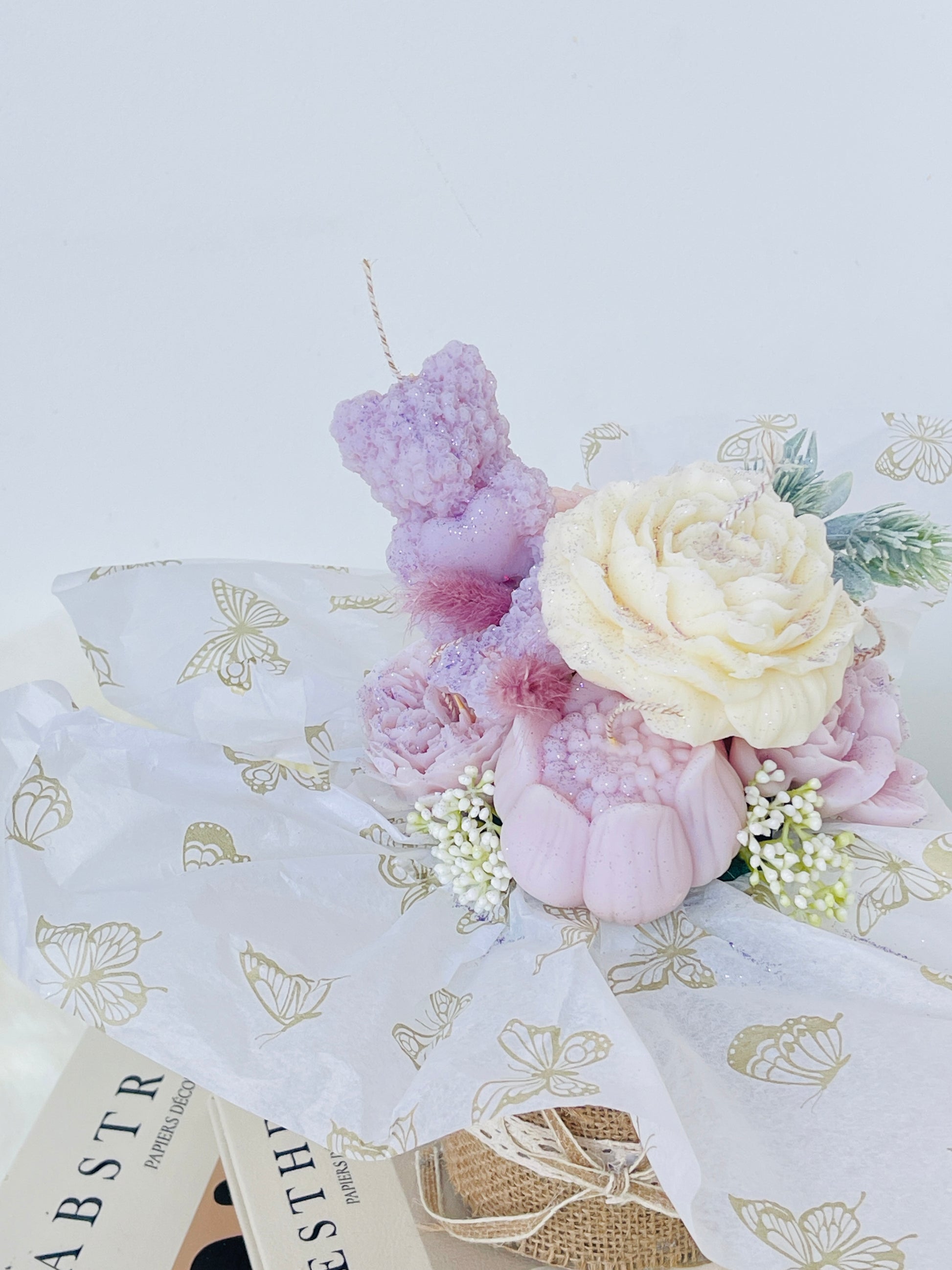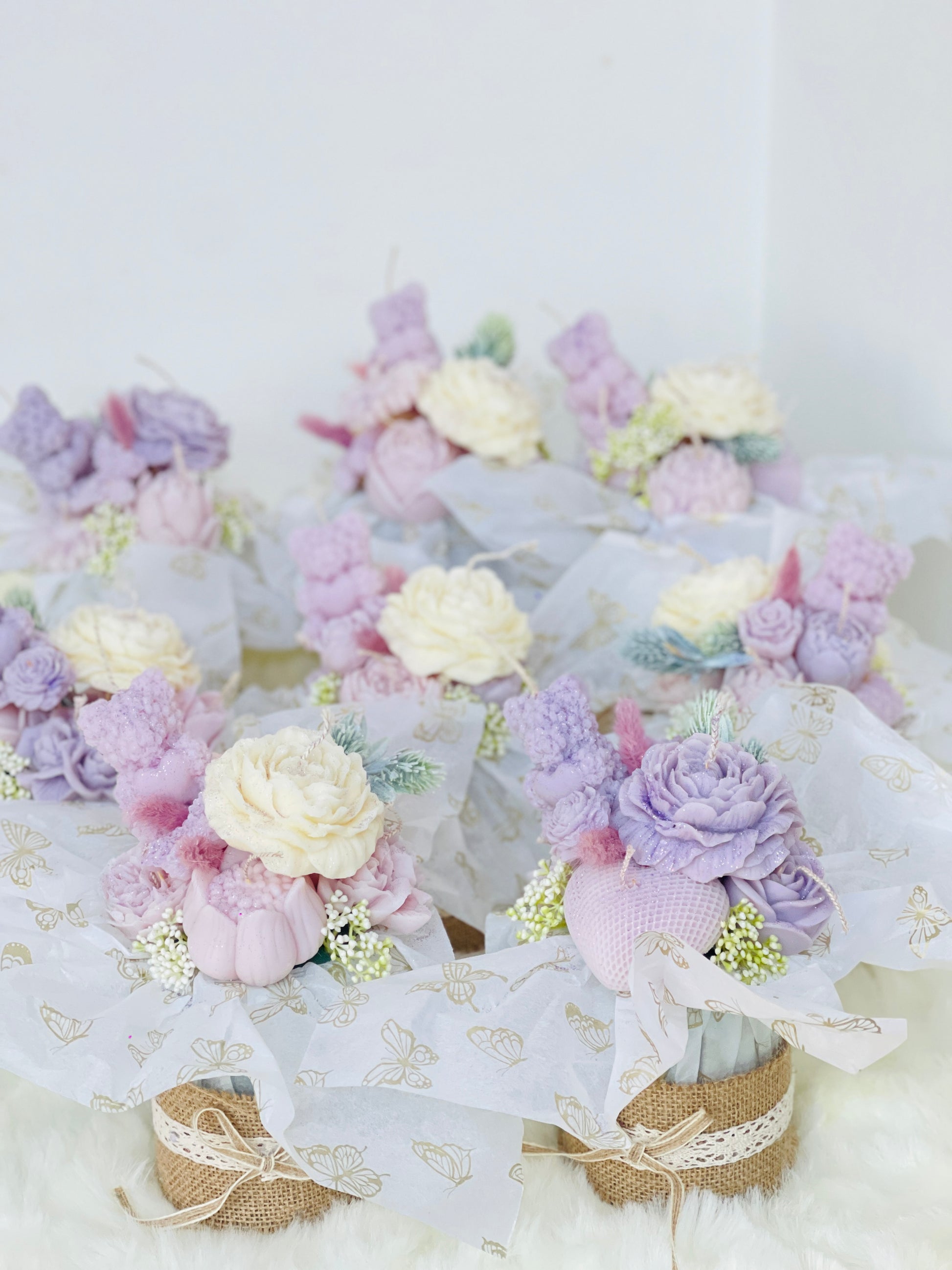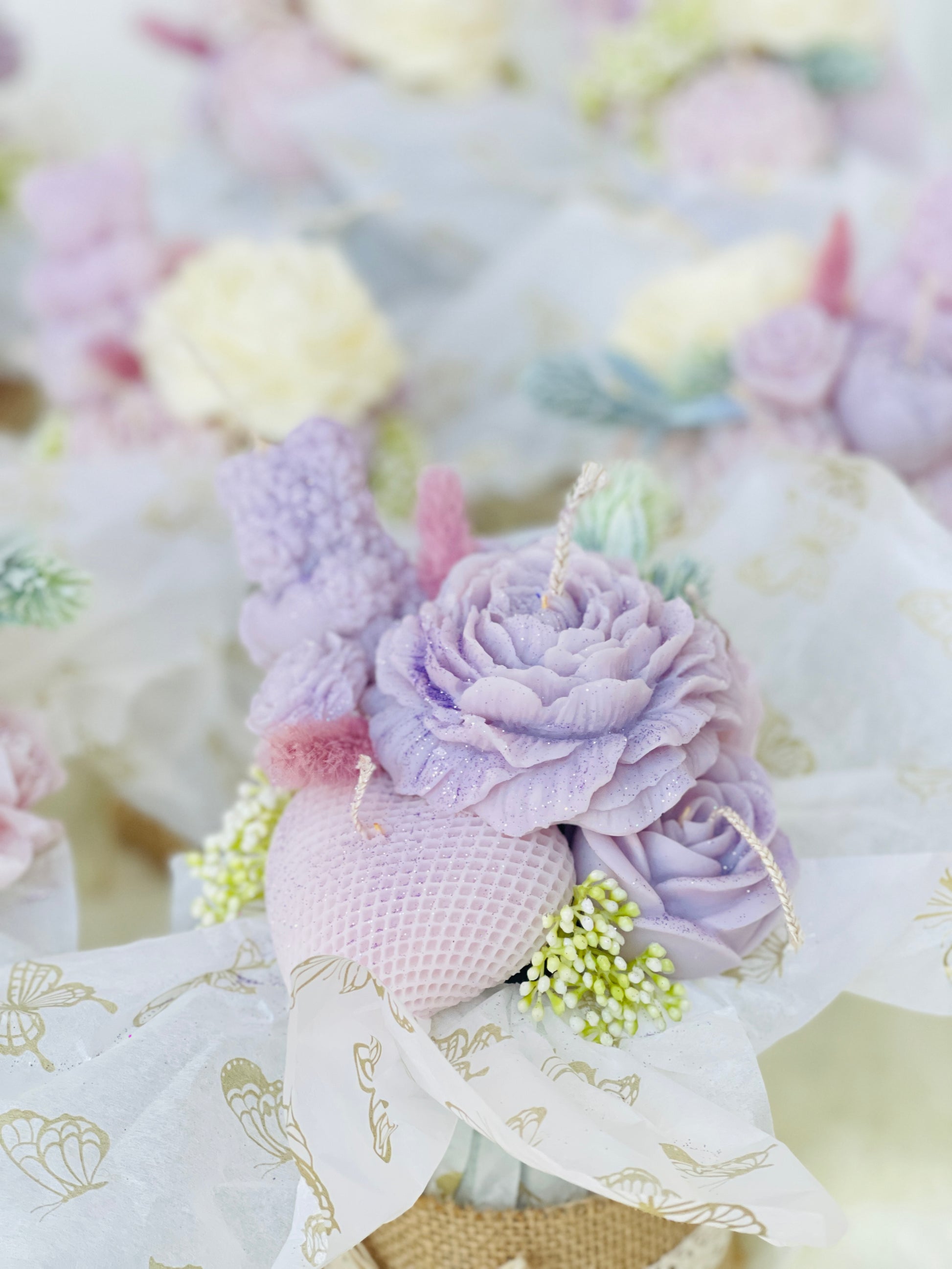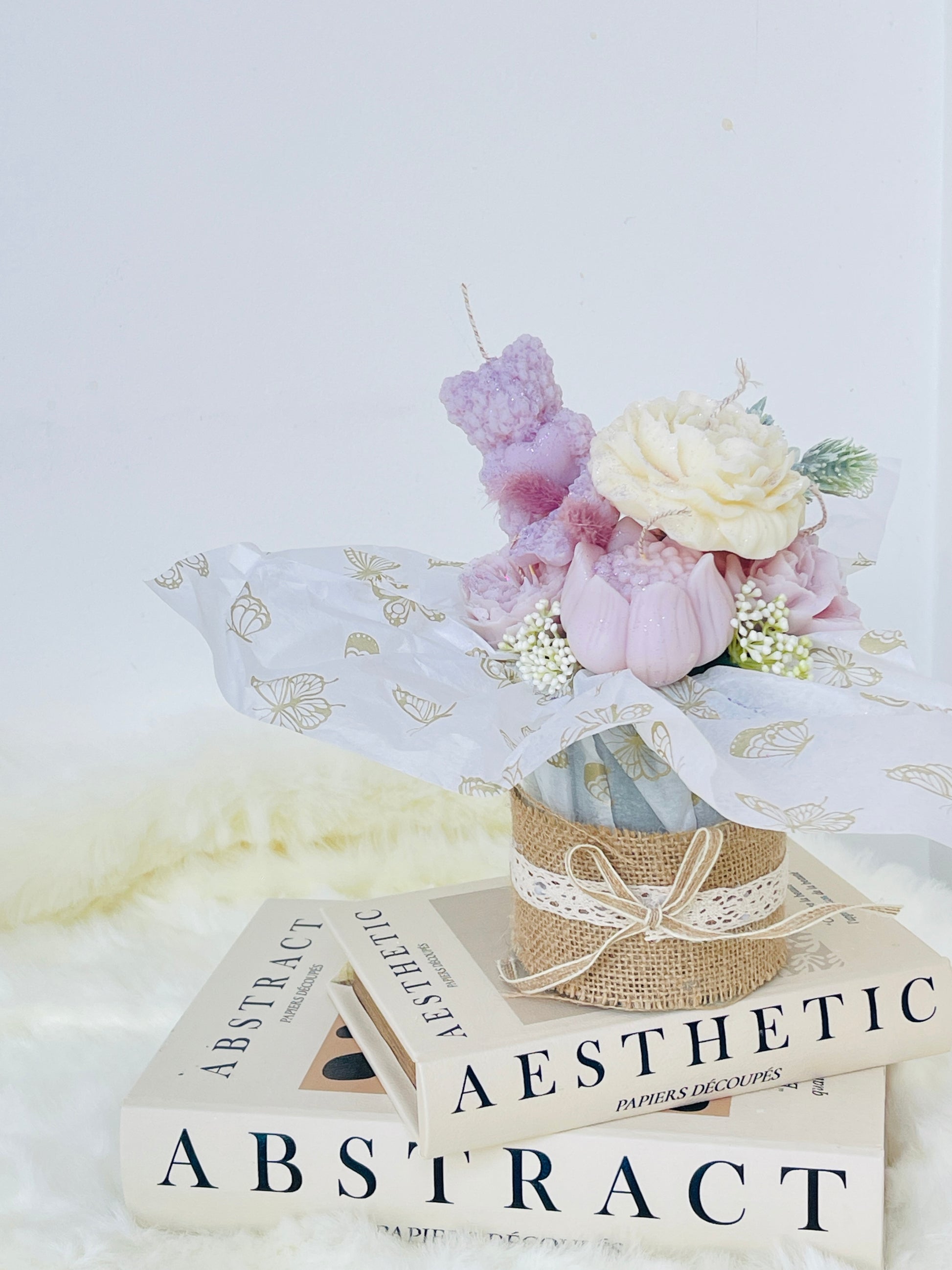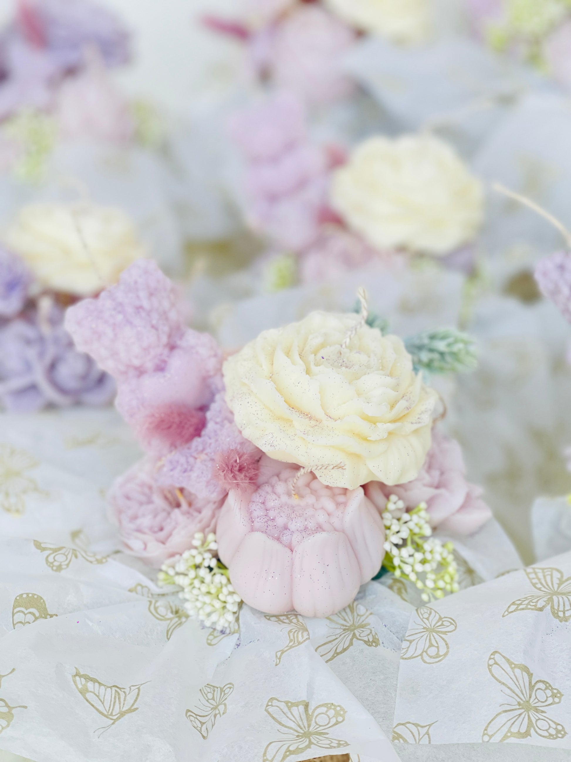 Bouquet includes soy wax scented candle and dried flowers. Our soy candles are made with top quality 100% organic soy wax and we only use top rated essential fragrances.