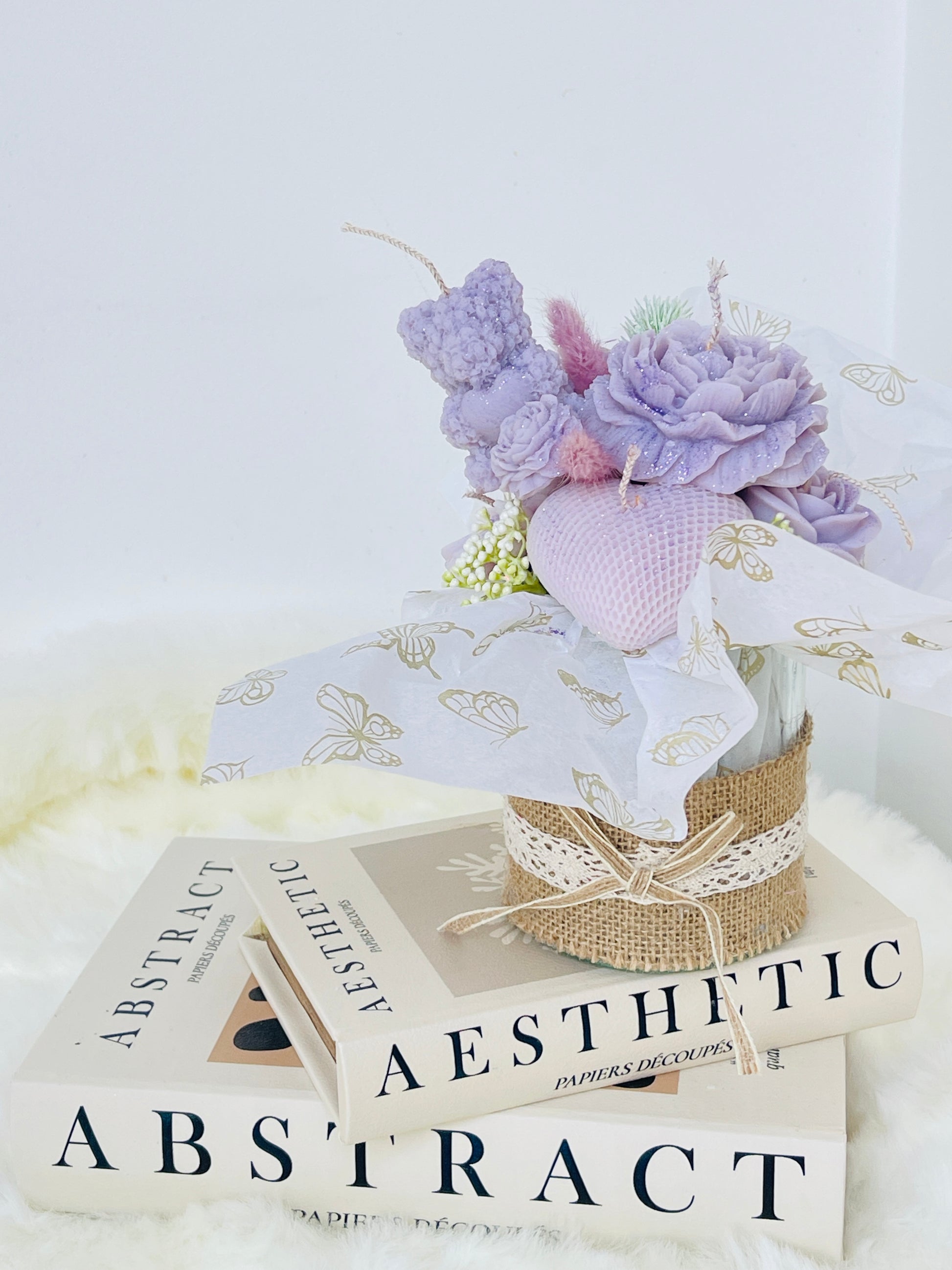Handmade Soy Wax Purple Flower Candle Bouquet with Dried Flowers - Perfect Gift Idea