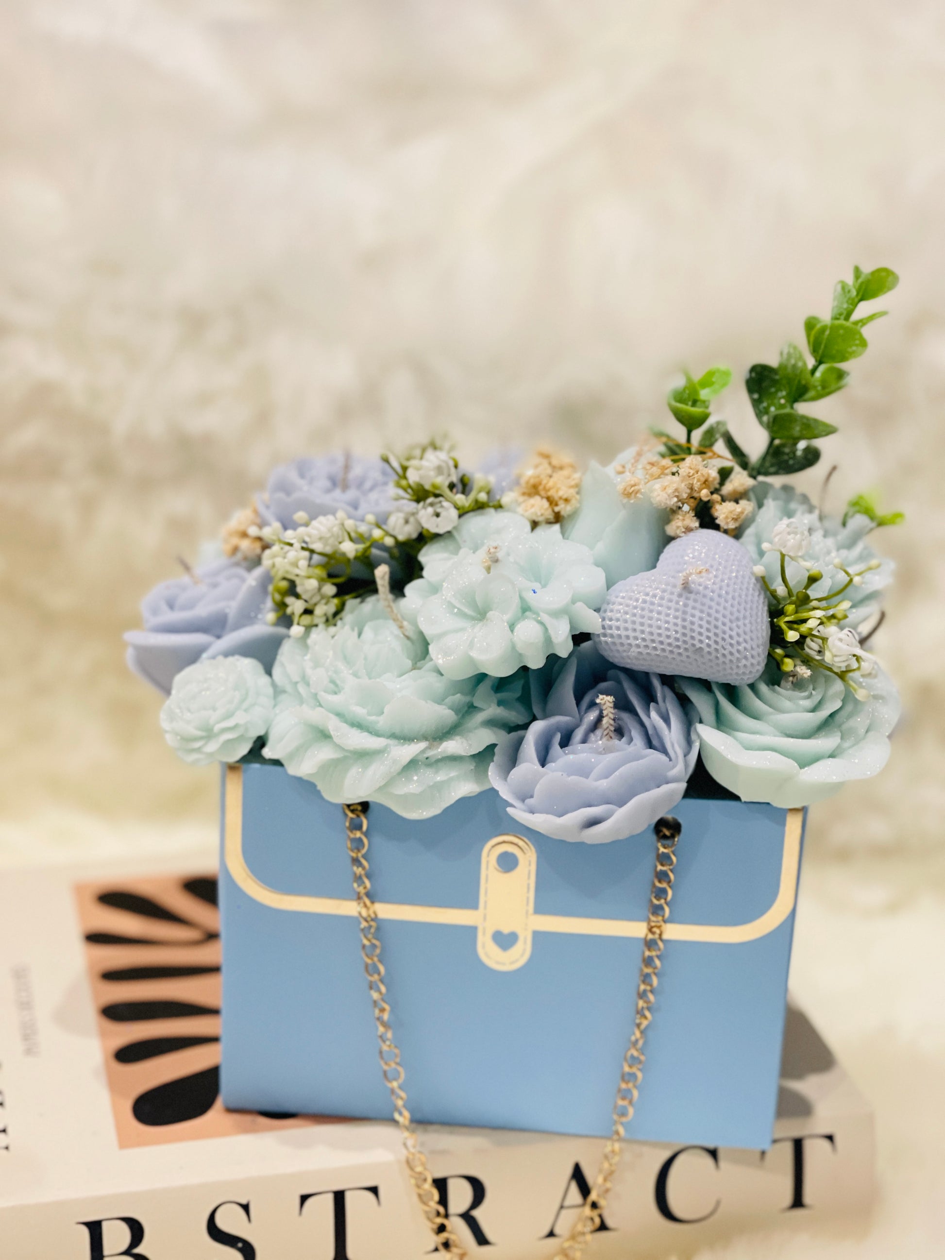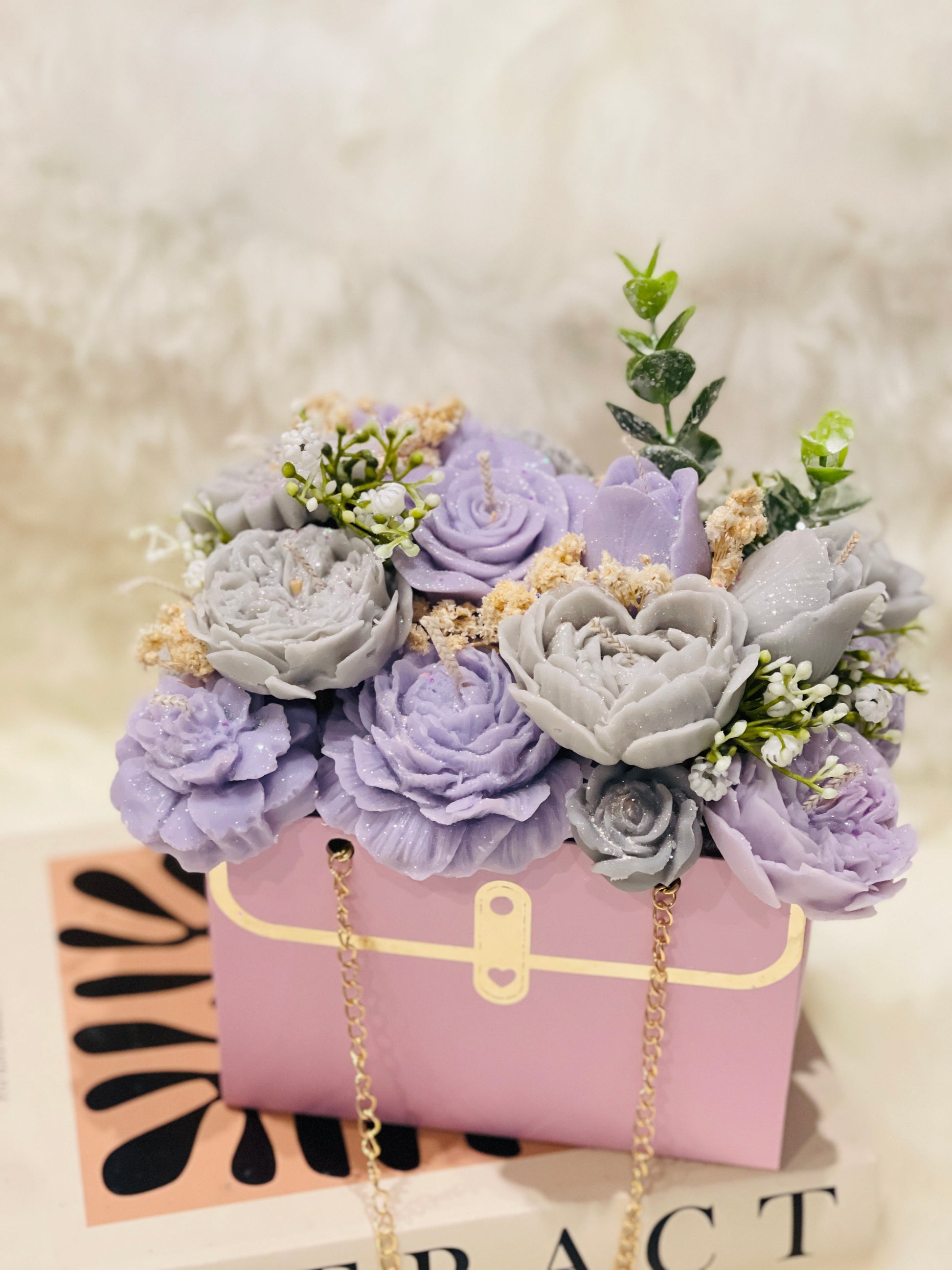 Bouquet includes soy wax scented candle and dried flowers. Our soy candles are made with top quality 100% organic soy wax and we only use top rated essential fragrances.