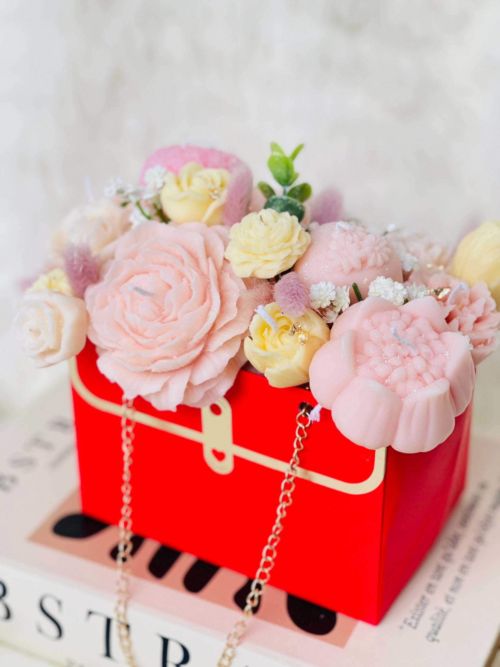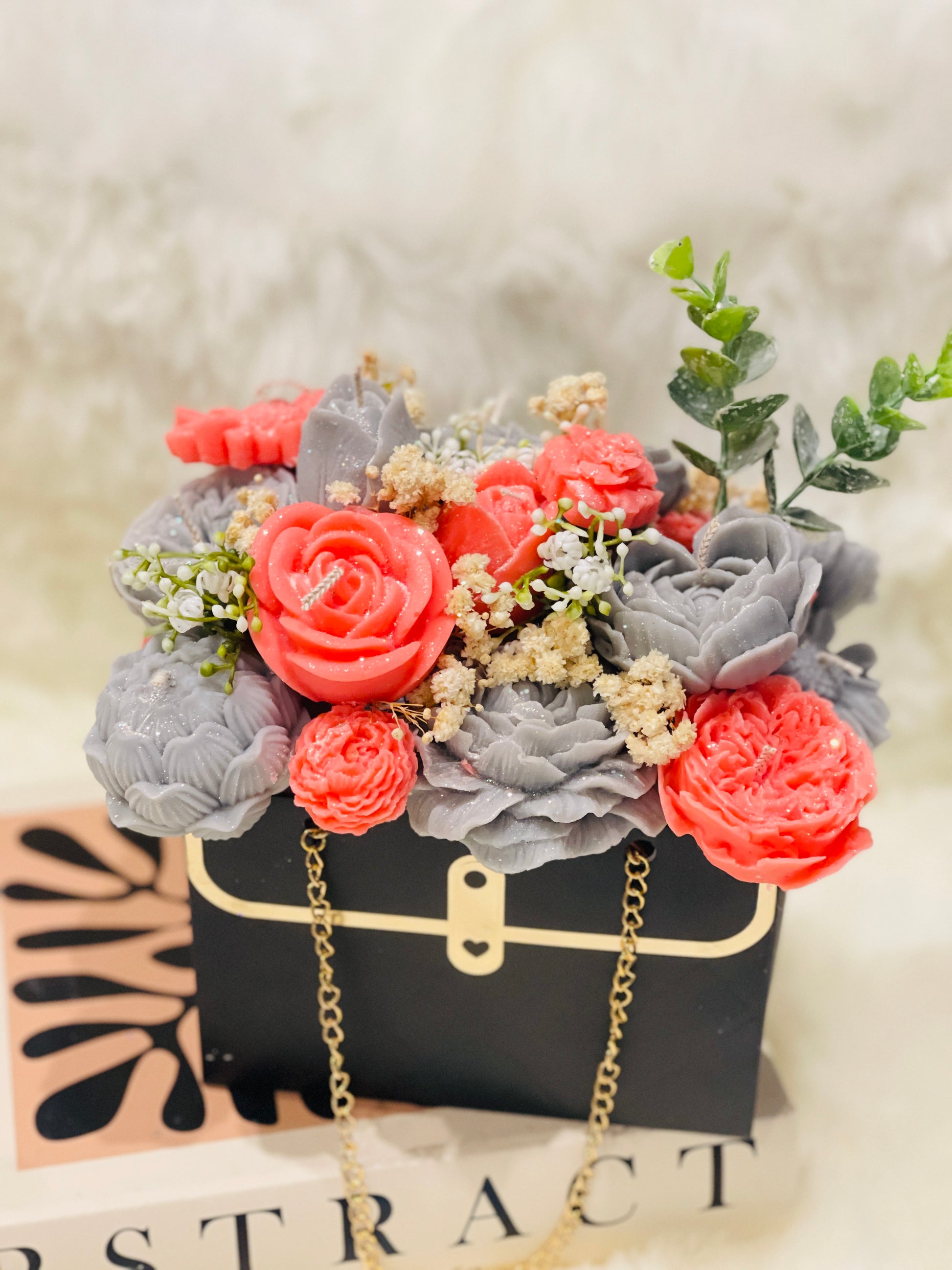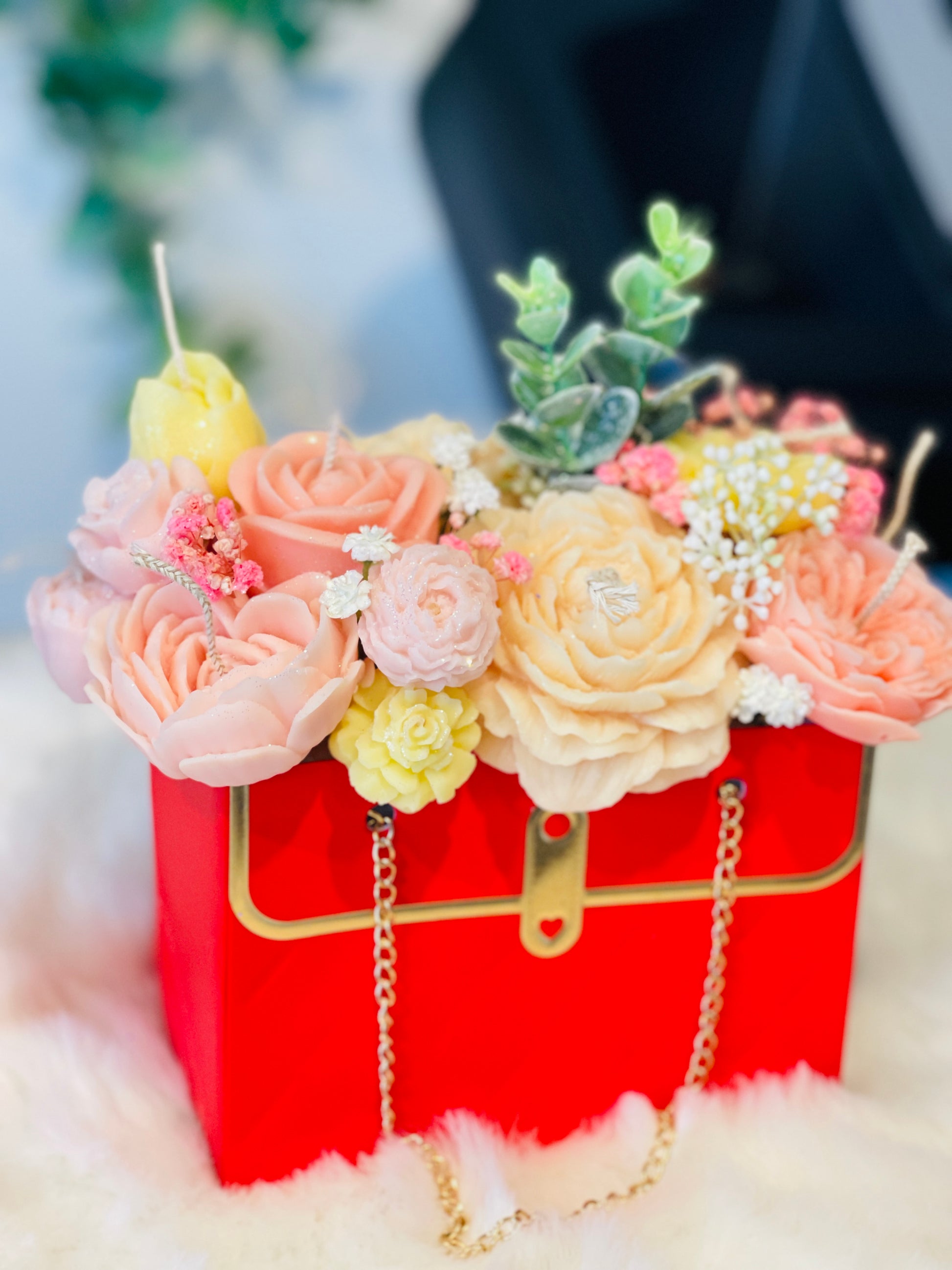 Scented Soy Pillar wax candles | Red Bag Flowers Gift | Luxury gift idea | Handmade