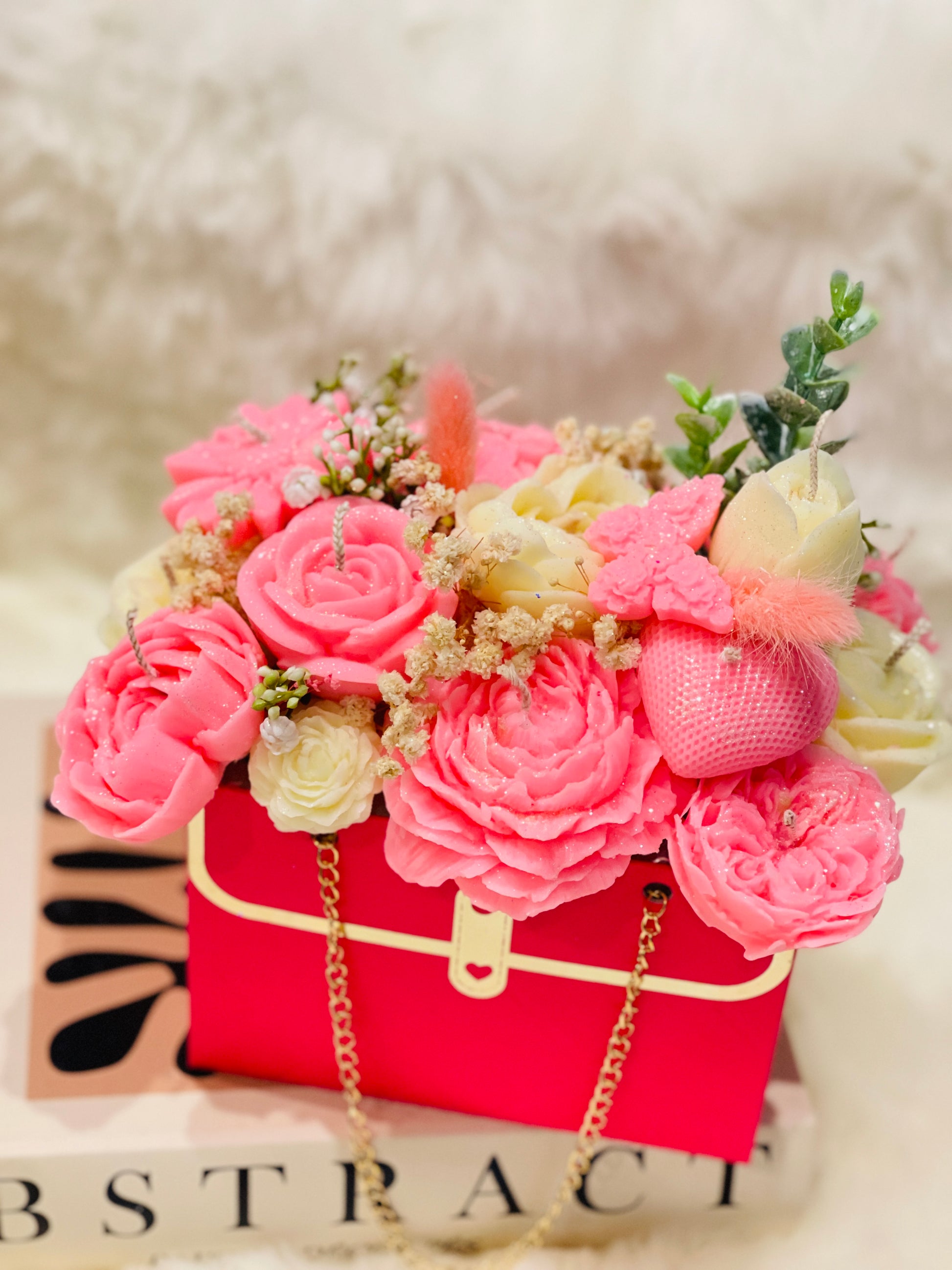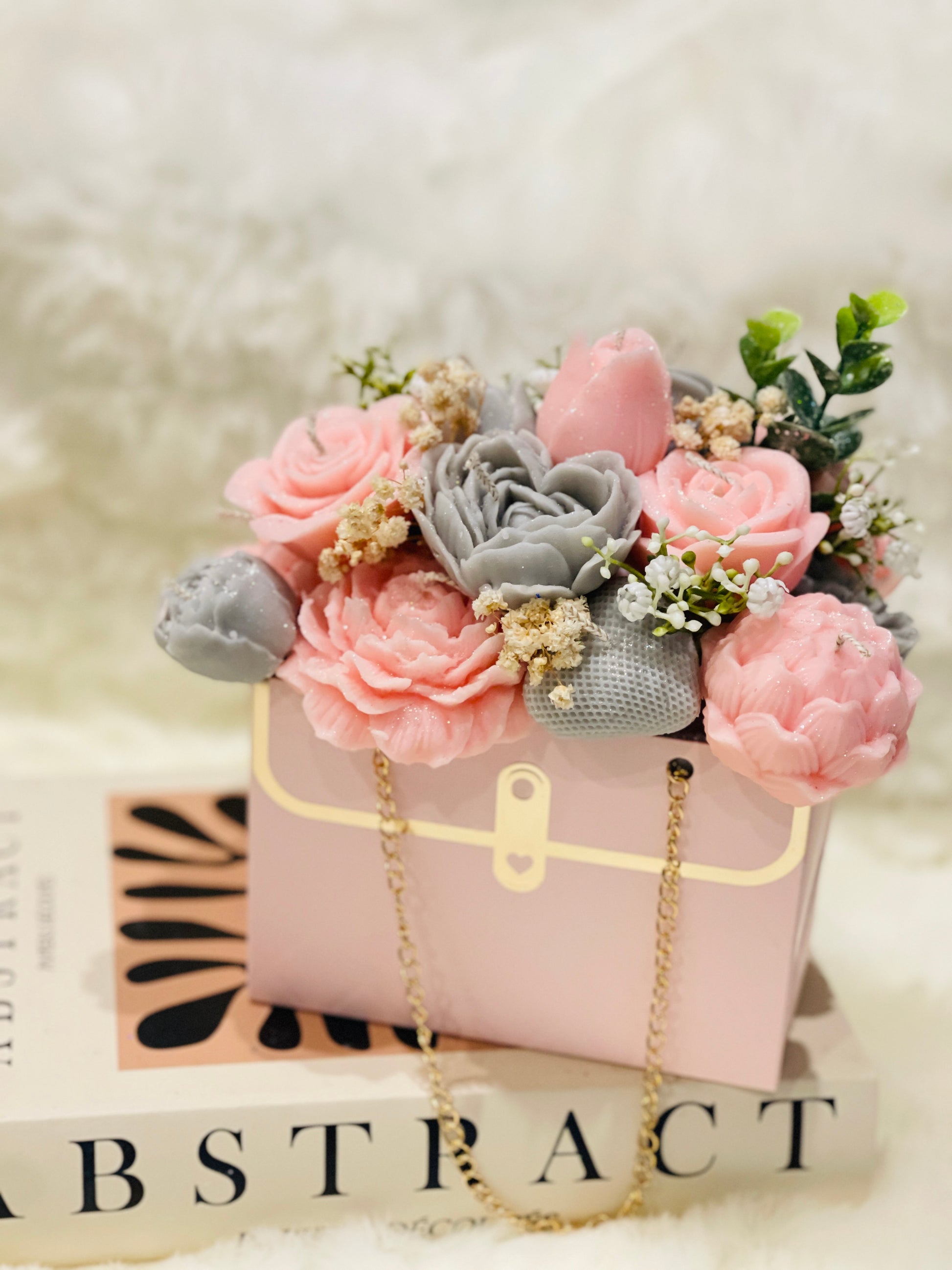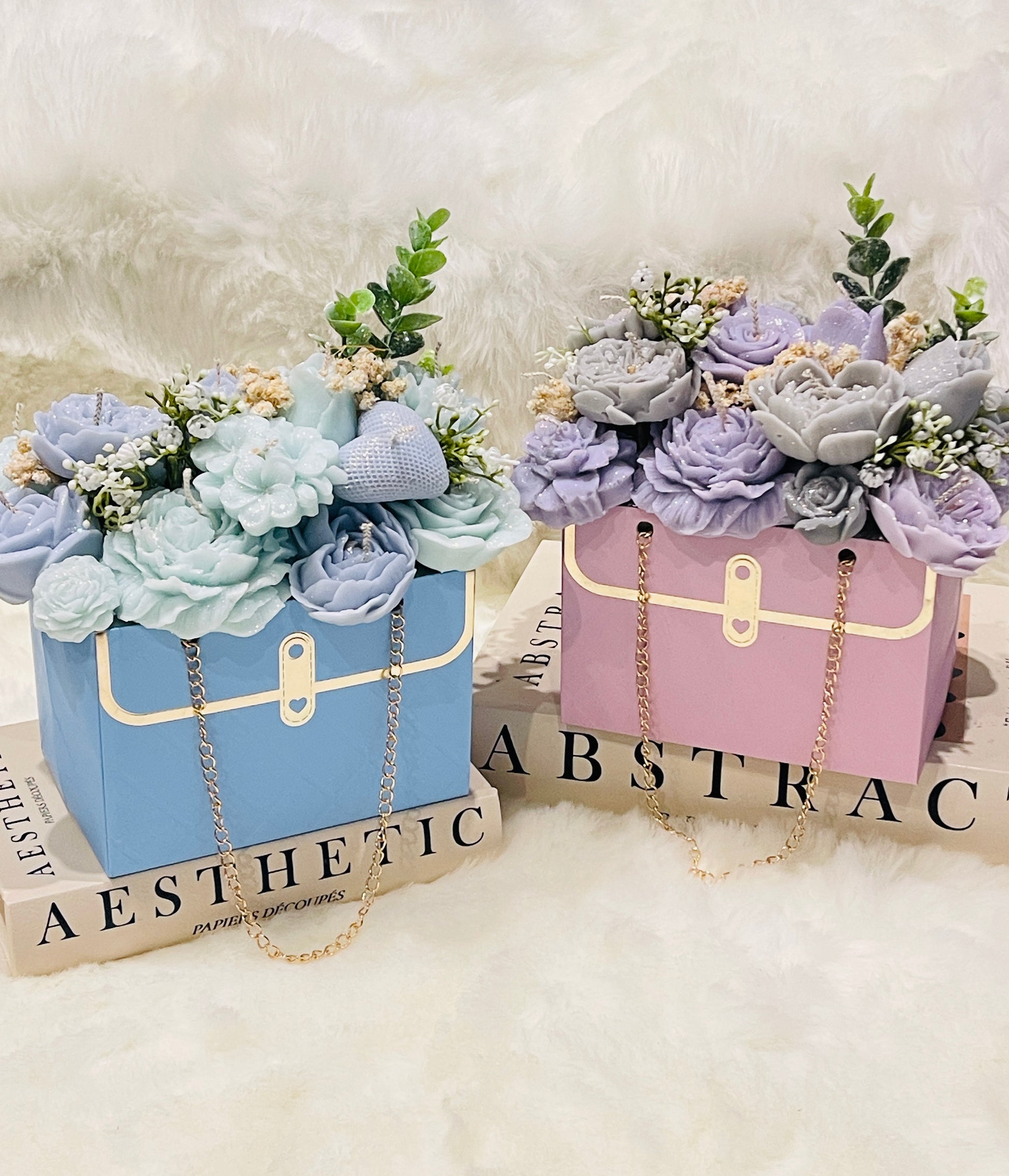 Scented Soy Pillar wax candles | Red Bag Flowers Gift | Luxury gift idea | Handmade