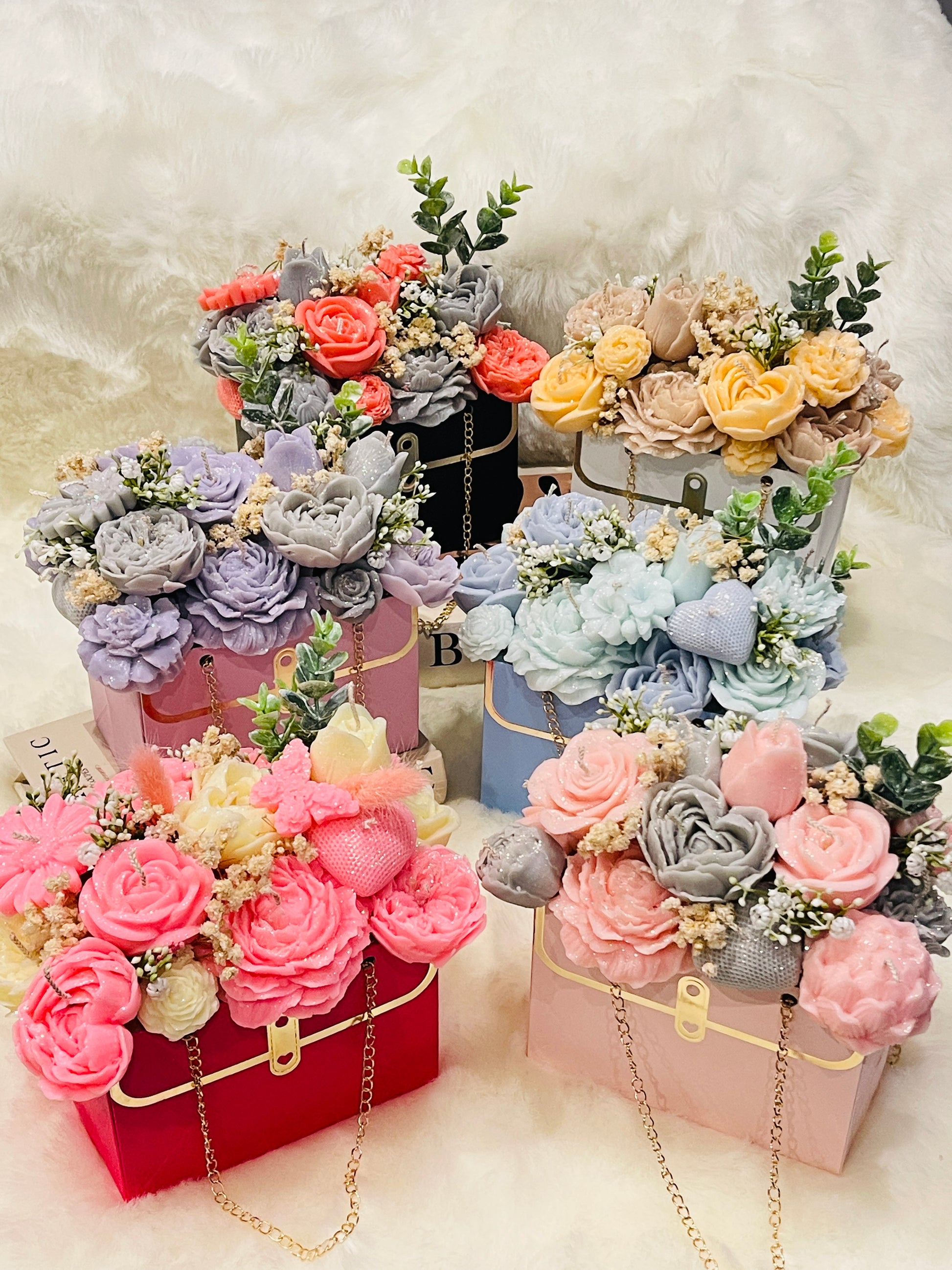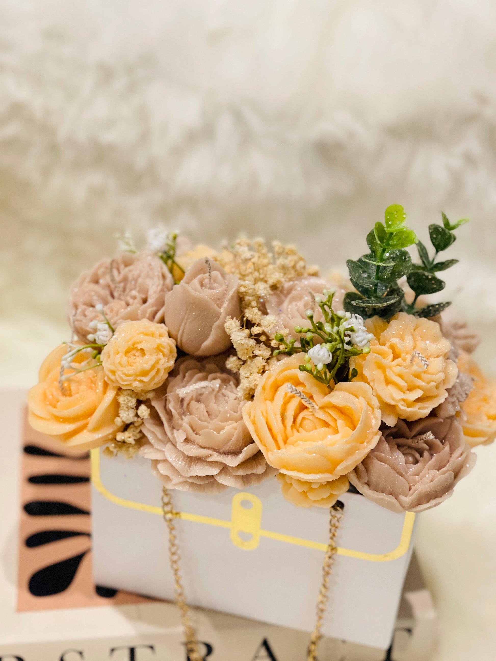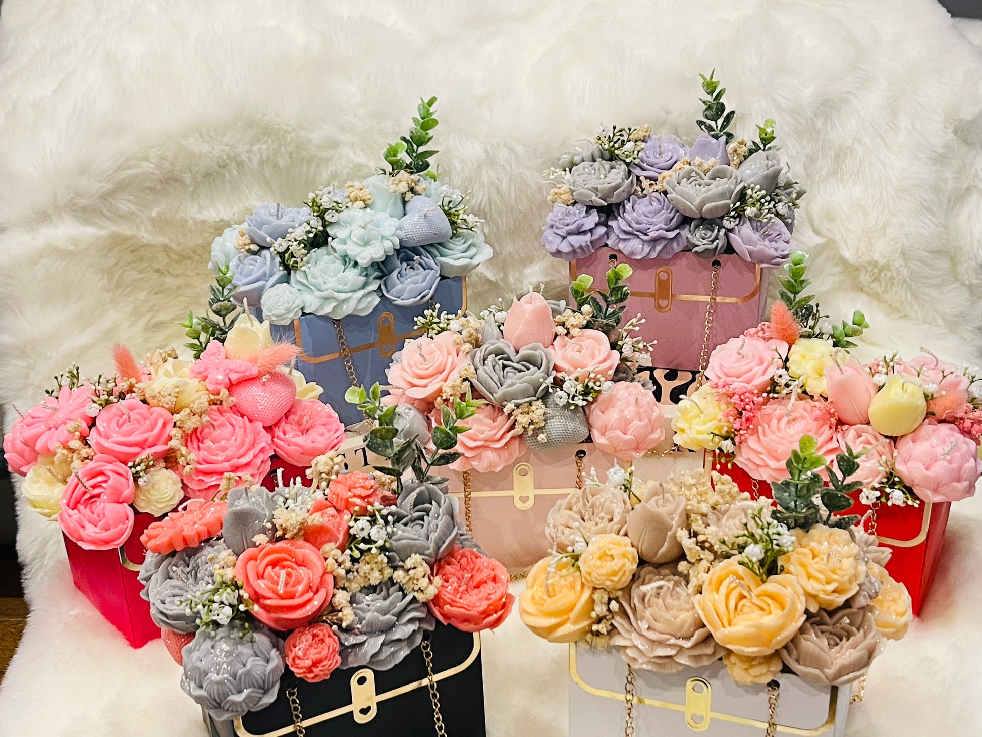 Handmade, bouquet of scented soy wax flower candles. Perfect as a gift idea or home decoration.