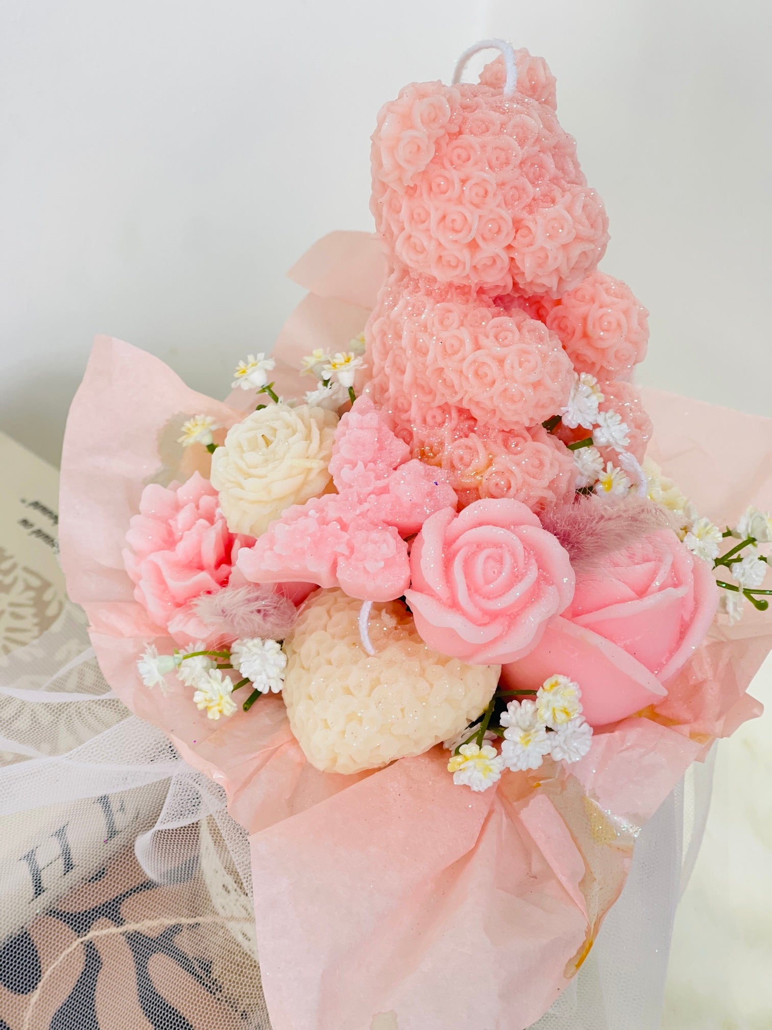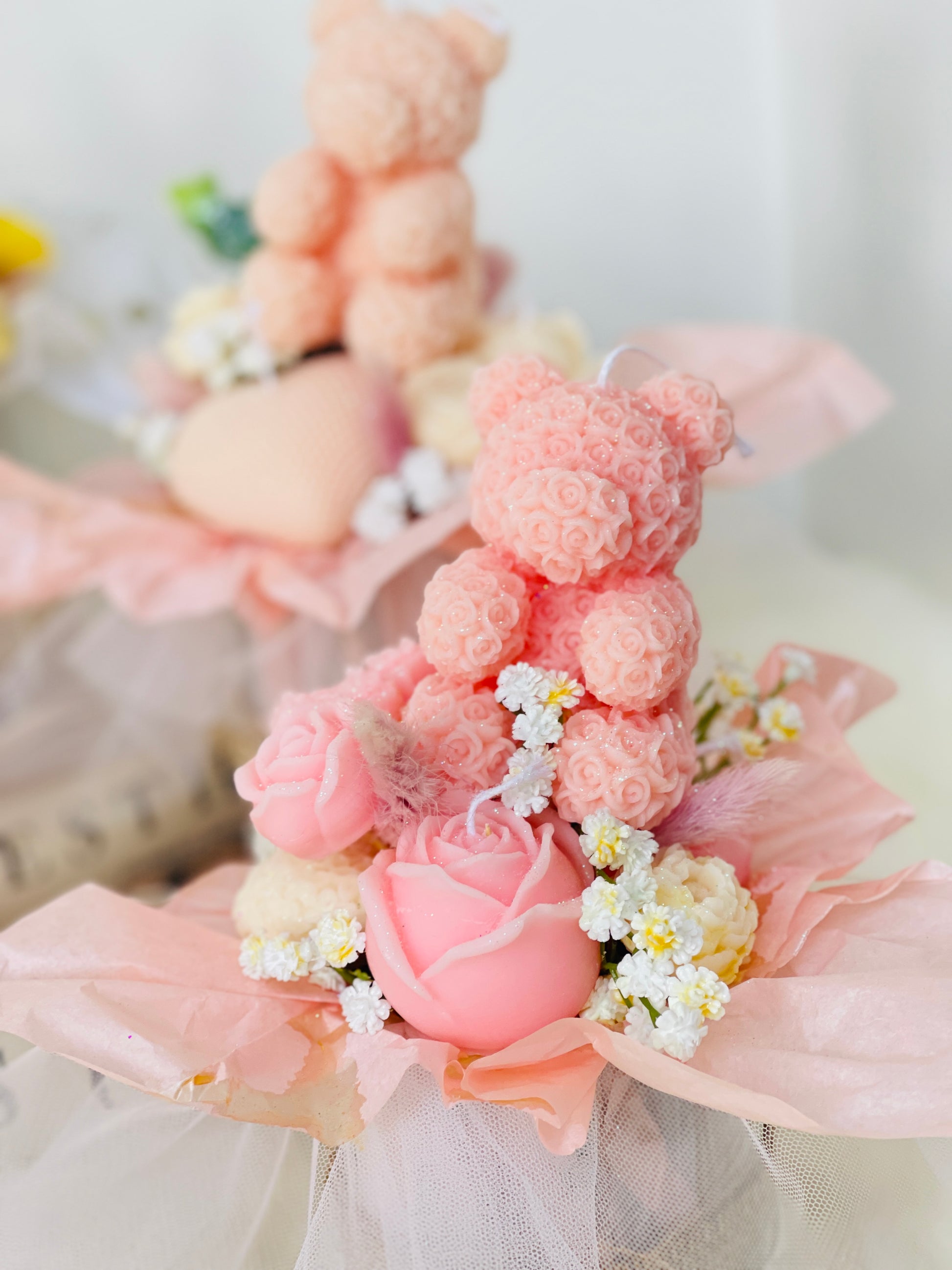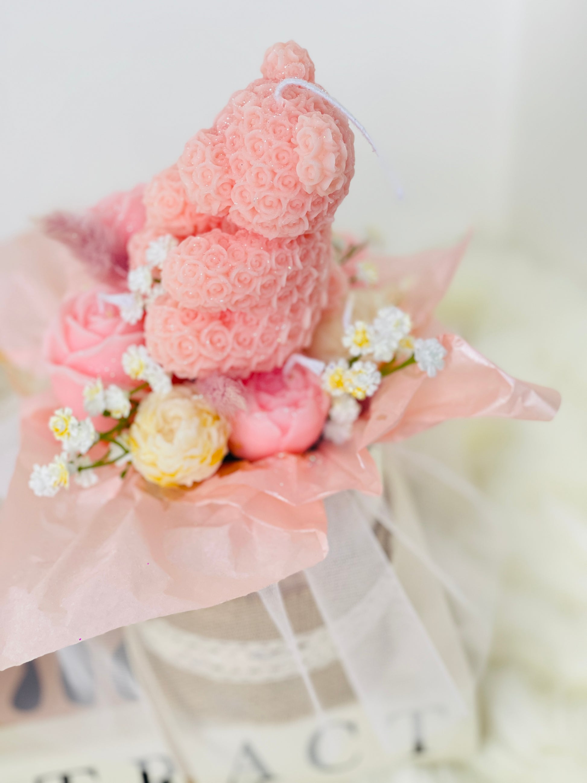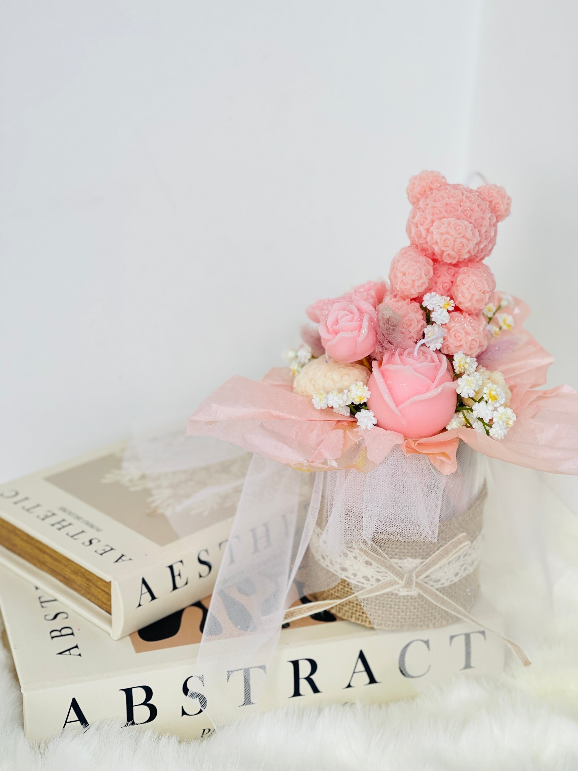 Scented Soy wax candles | Pink Rose | Pink Bear| Flowers Gift | Luxury gift idea | Handmade