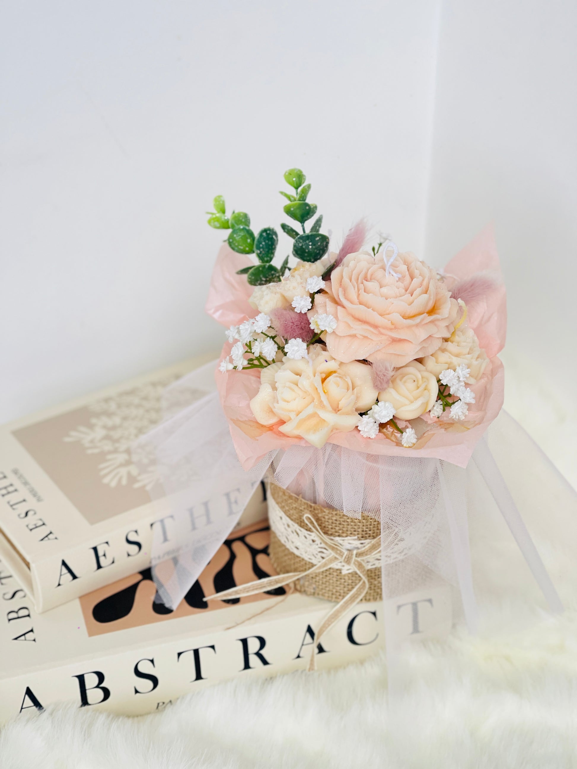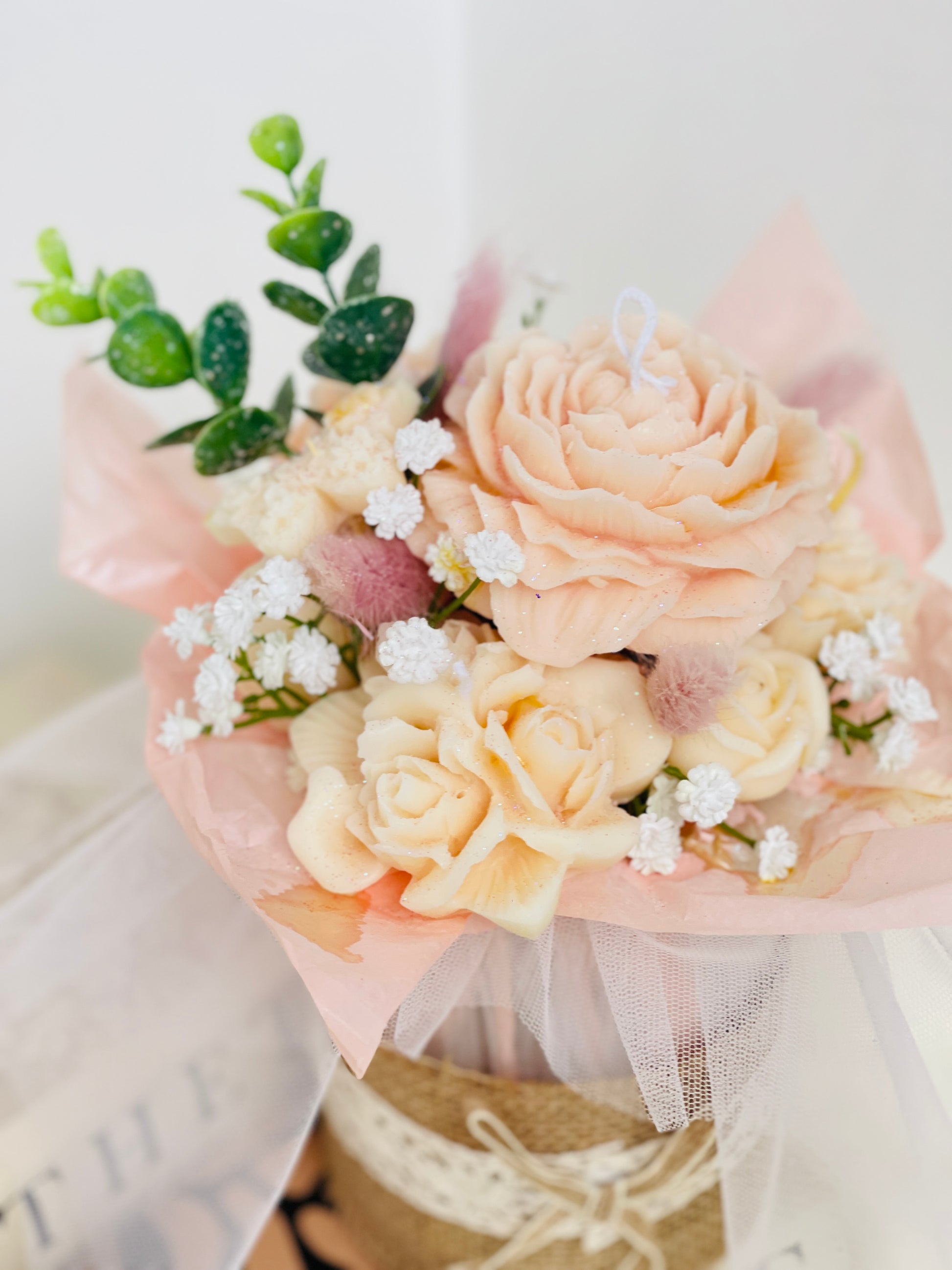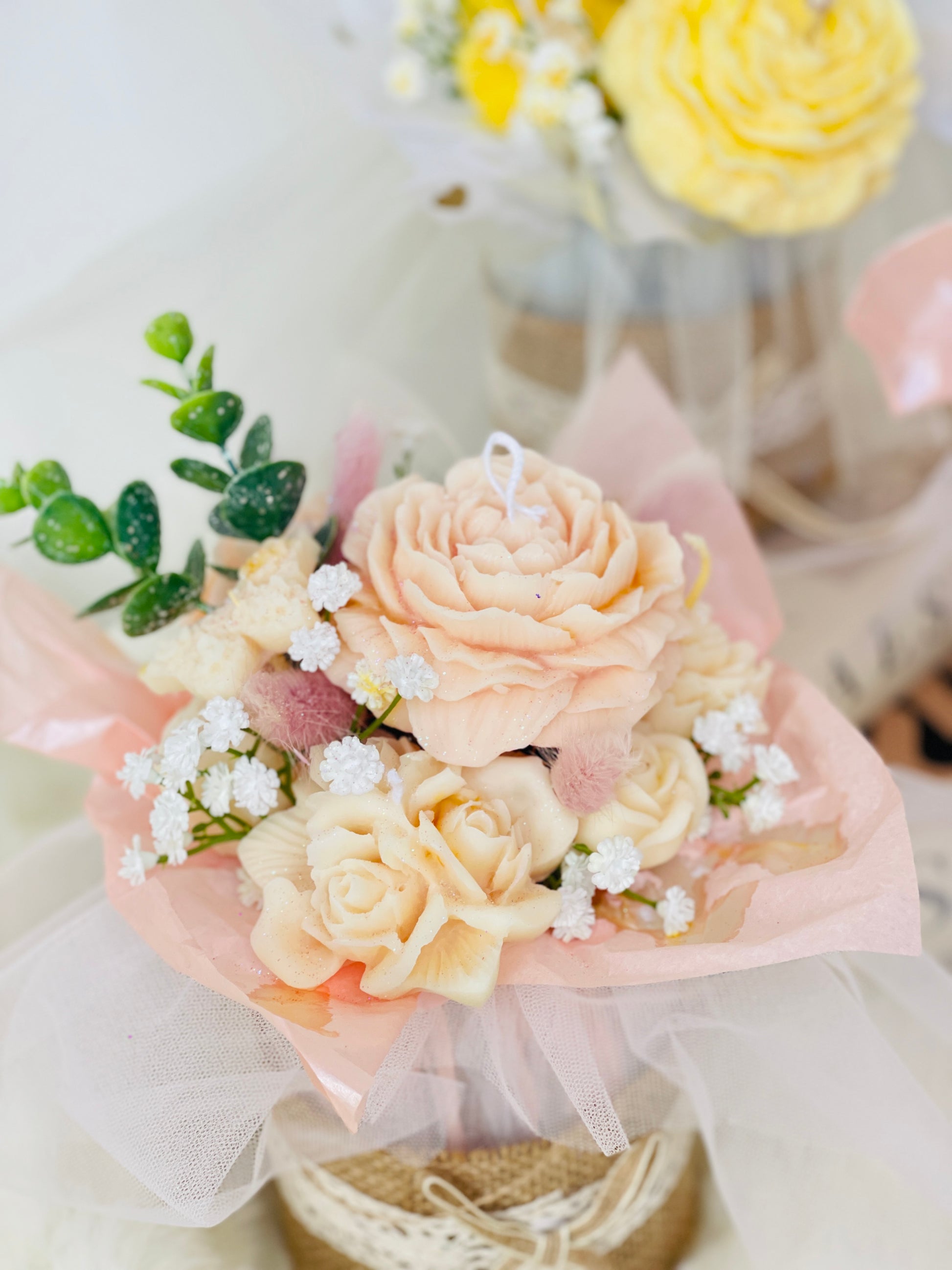 Bouquet includes soy wax scented candle and dried flowers. Our soy candles are made with top quality 100% organic soy wax and we only use top rated essential fragrances.